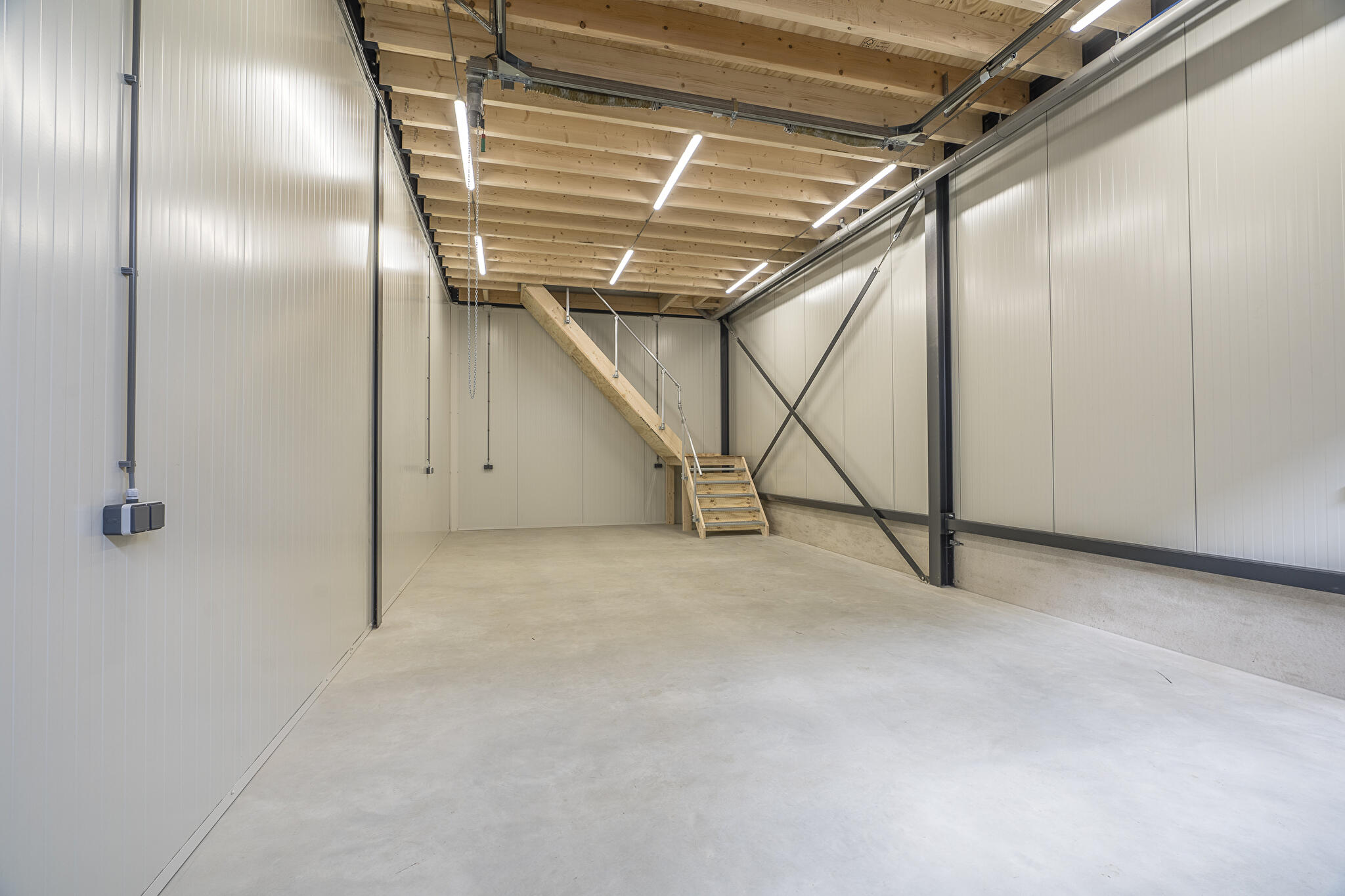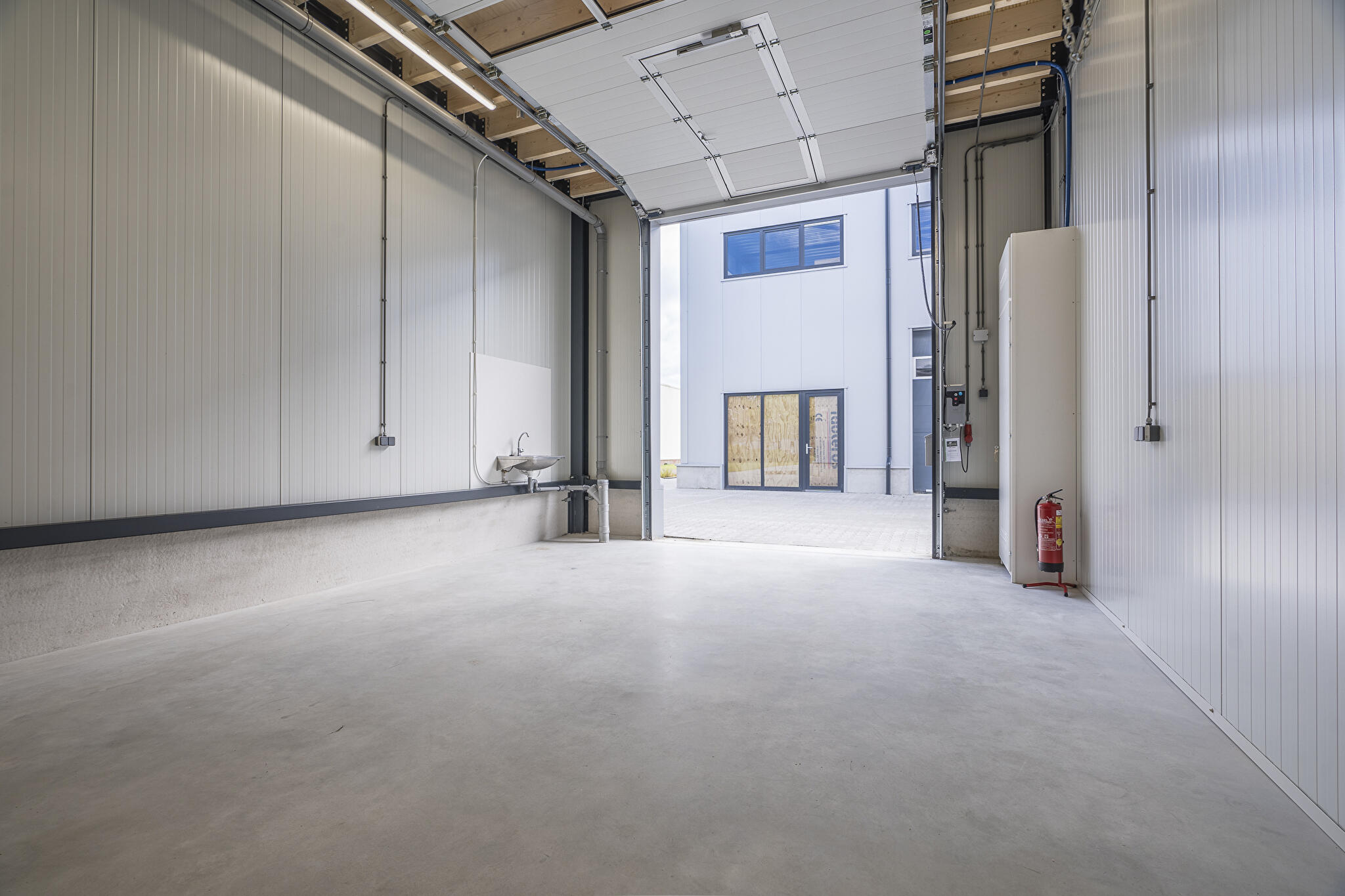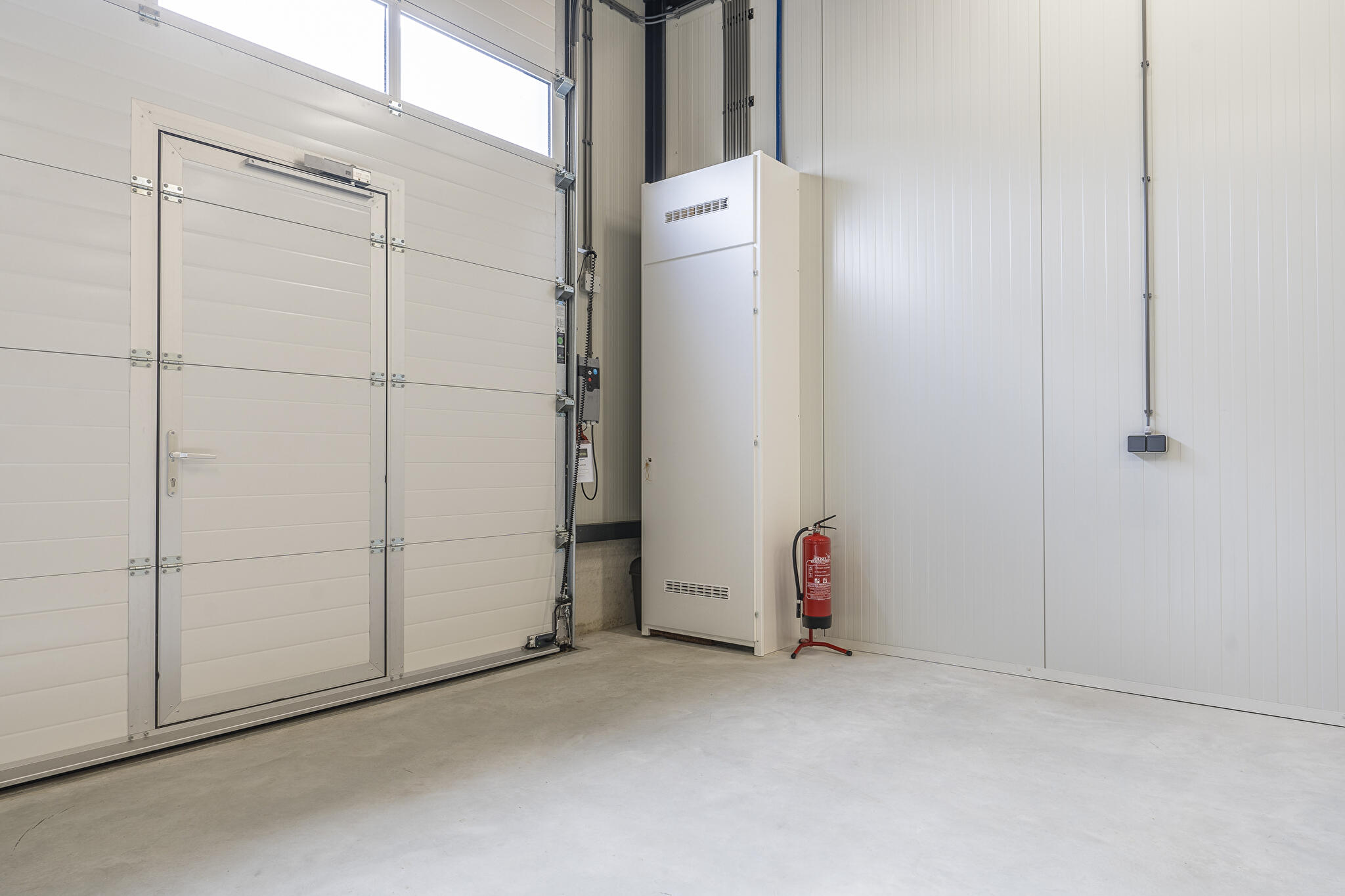 - elektrische bedienbare overheaddeur van ca 3 meter hoog en 3,75 meter breed;